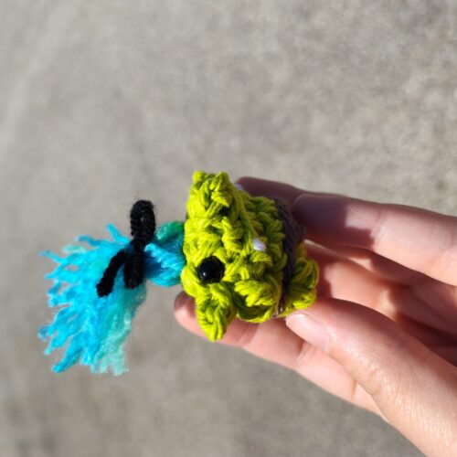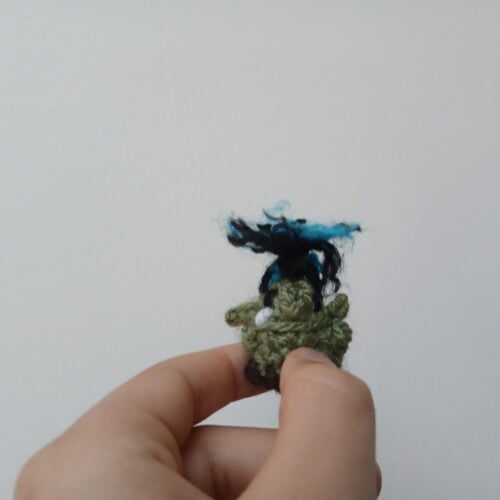 [Starting in Green] Magic loop (leave long tail end) *Work around tail end until first ear