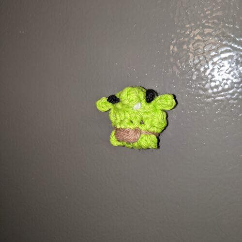 Nose = yo, insert and pull a loop through, yo and pull through 2 (leaving 2 loops on hook), ch 2, yo, insert and pull a loop through, yo and pull through 2, yo and pull through all.
