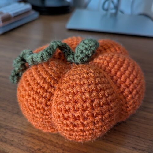 Make the pumpkin even taller by repeating Rnd 24 as many times as you want. In this picture I made 15 rounds total (12 is ‘normal’).