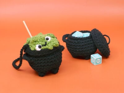 Bubble the Cauldron Amigurumi Dice Pouch