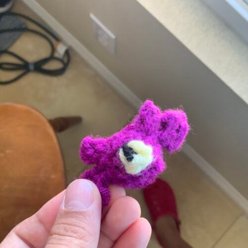 Cut yarn and pull through. Add a magnet if desired. Stuff and sew closed