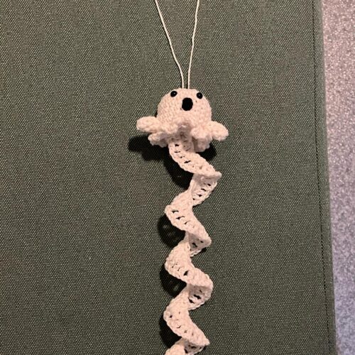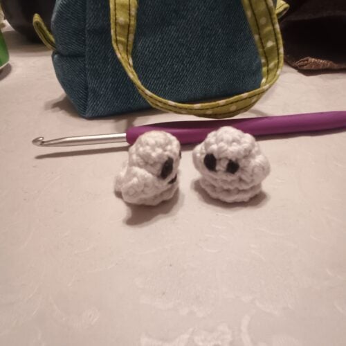 The written pattern says “minigurumi candy corn” though it should say “minigurumi ghost”