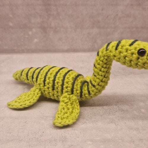 just joined club crochet because I saw this Plesiosaur pattern. I’m a beginner but followed along (the end product looks a bit wonky but I’ll work on that) Plesiosaurs are my favourite dinosaur and now I get a miniature one! super awesome!!!!