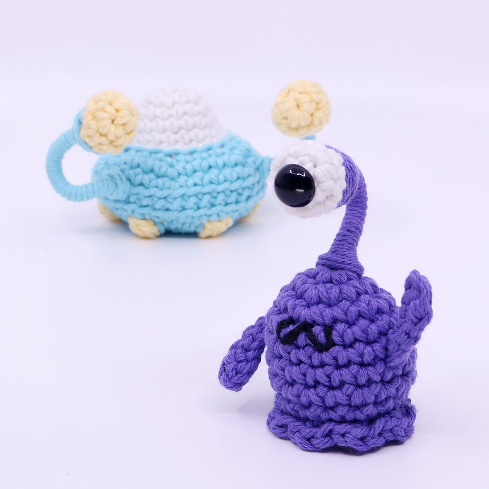 Flurple the Flexorian Alien and UFO Amigurumi